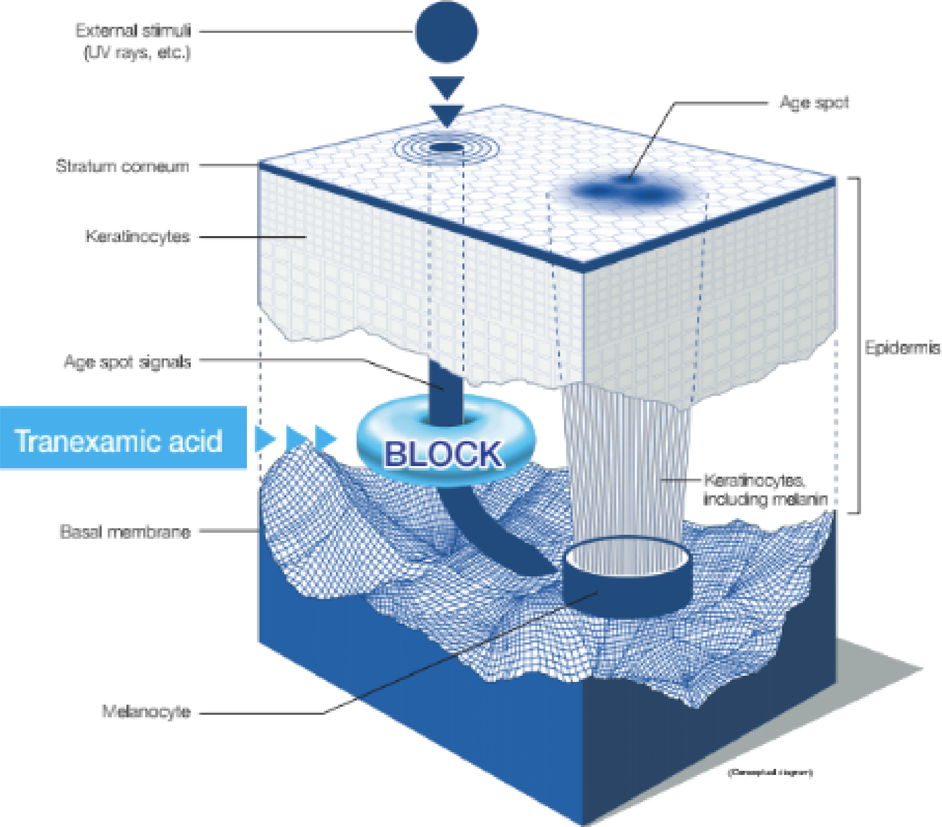 KP: hỗ trợ Axit Tranexamic ngăn chặn hình thành melanin một cách hiệu quả.